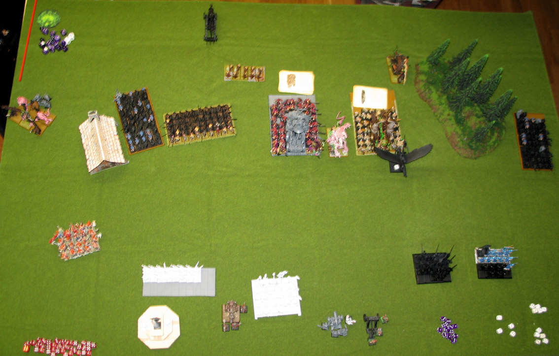 Check Mika's blog for the Skaven version of the battle: http://stormingrats.blogspot.com/2012/05/might-of-skavenblight-forces-high-elves.html